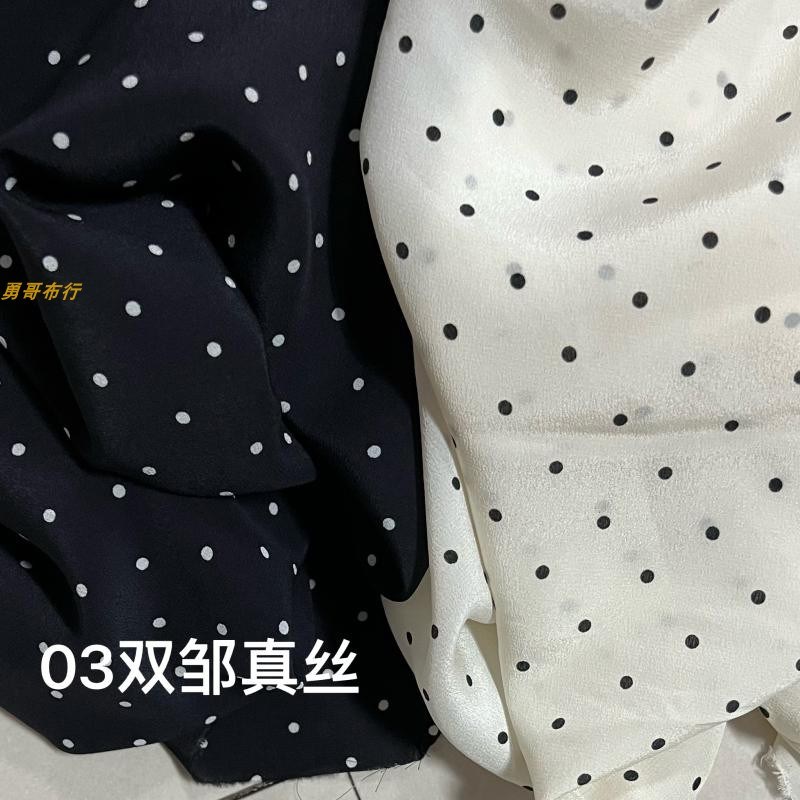 03双邹真丝黑白小波点面料100%桑蚕丝凉夏圆点连衣裙衬衫服装面料