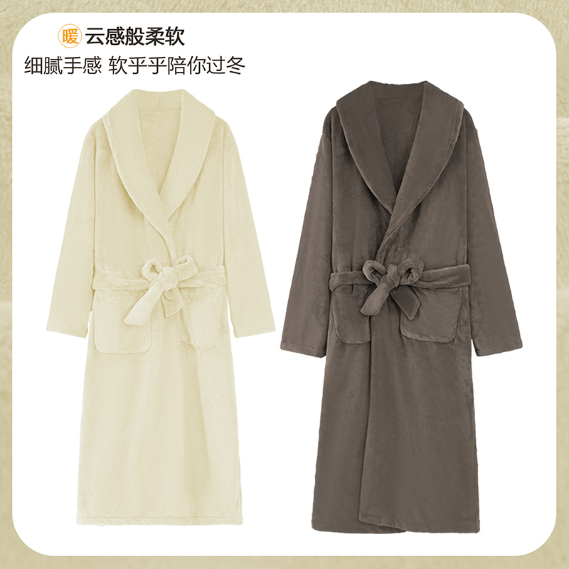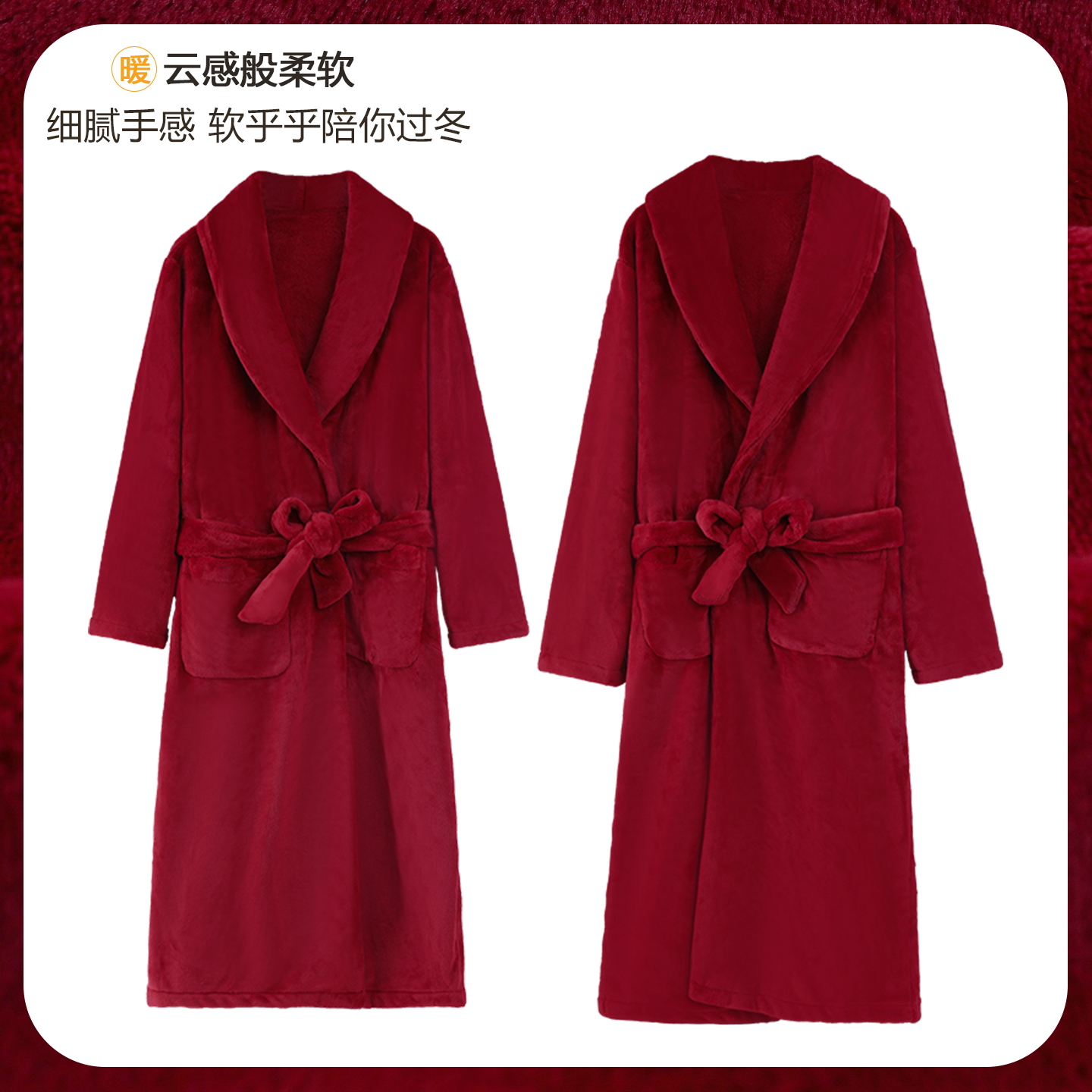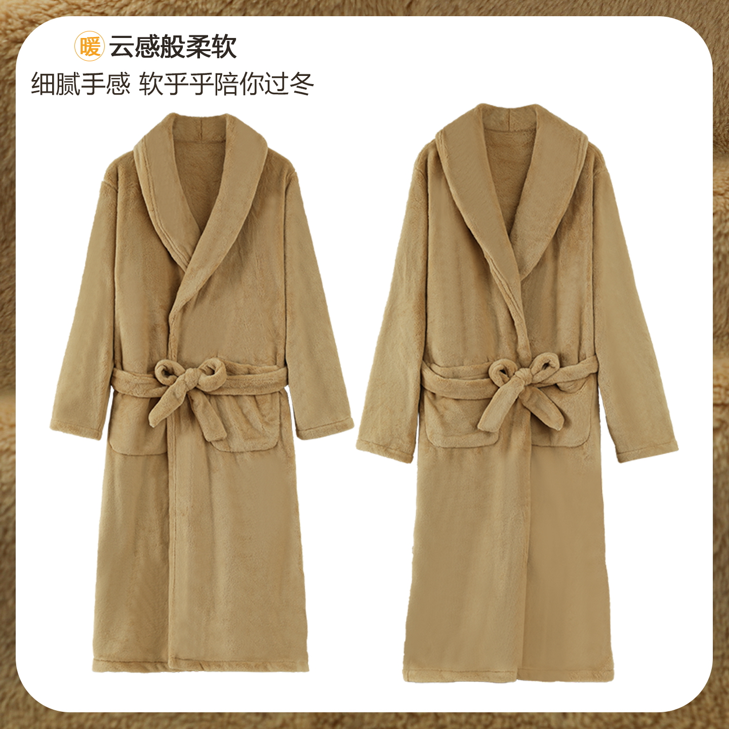 双面加厚款情侣睡袍抗静电秋冬季男女士珊瑚绒长款大码法兰绒浴袍
