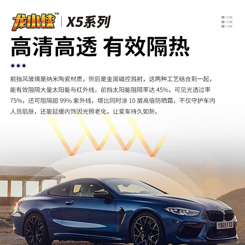 龙小侠X5陶瓷汽车玻璃贴膜前挡风侧窗防晒隔热隐私车窗太阳防爆膜