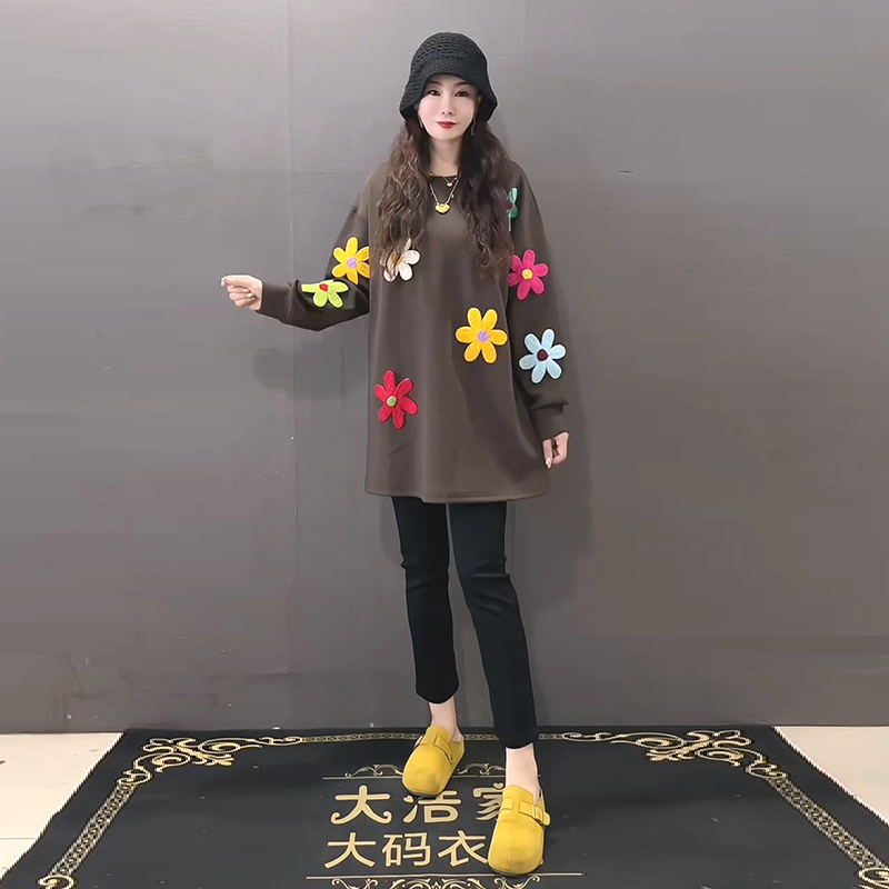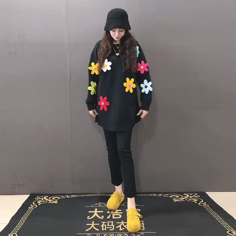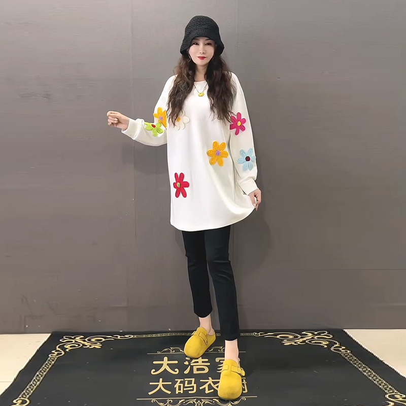 2025早秋减龄新款大码女装胖MM时尚重工毛巾绣彩色花朵设计感卫衣