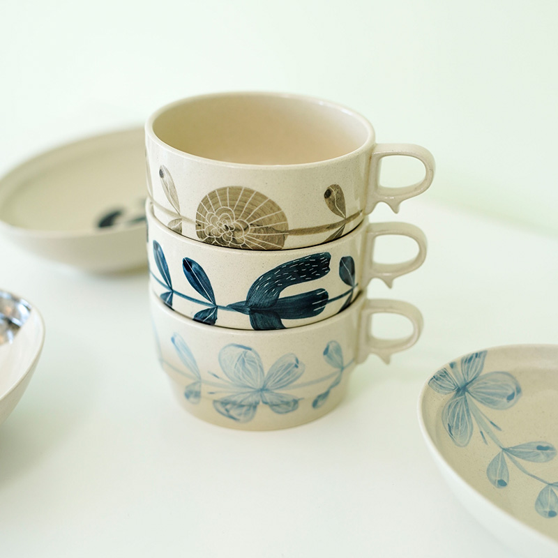 日本进口波佐见烧蓝染窑烧系列陶瓷餐具手绘杯碗盘家用日式