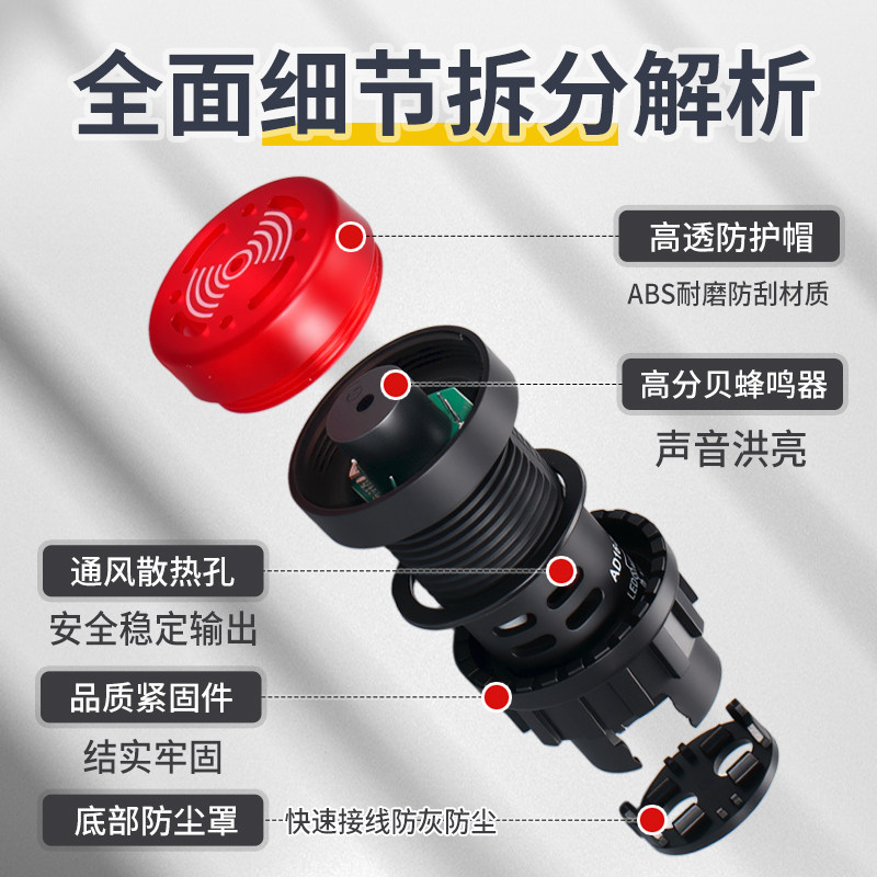 蜂鸣器AD16-22SM断续带灯LED闪光声光报警器交直流220V380V24V12V