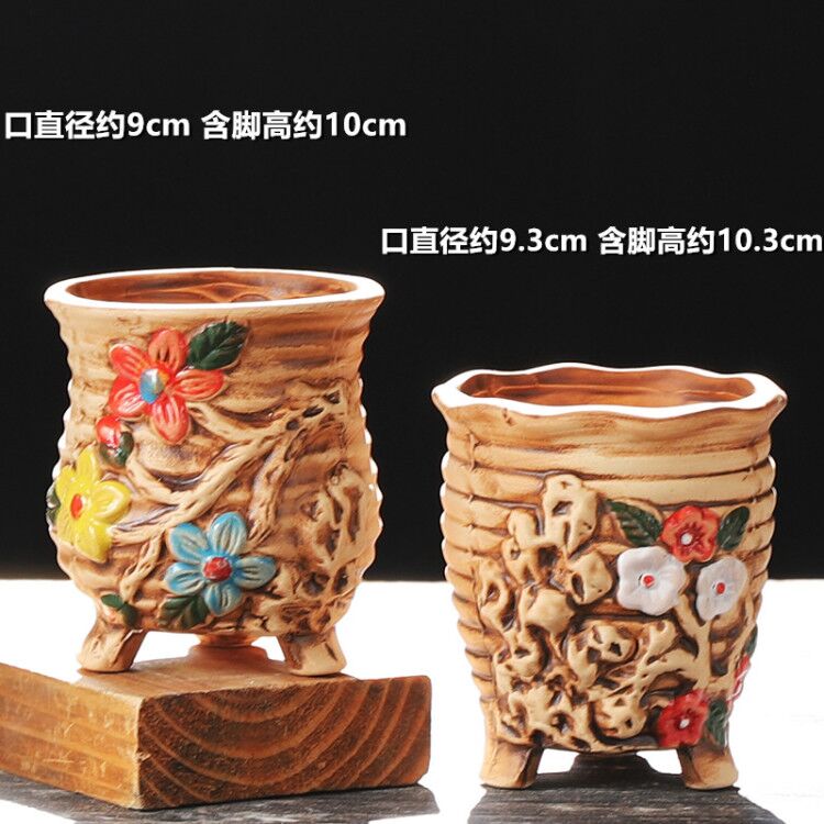 粗陶多肉植物陶瓷花盆素烧复古韩式手绘肉肉老桩简约清新透气室内