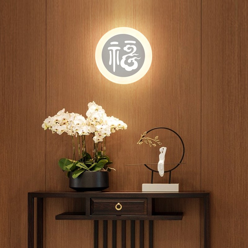 现代中式福字壁灯卧室床t头灯客厅背景墙壁灯走廊过道楼梯阳台灯