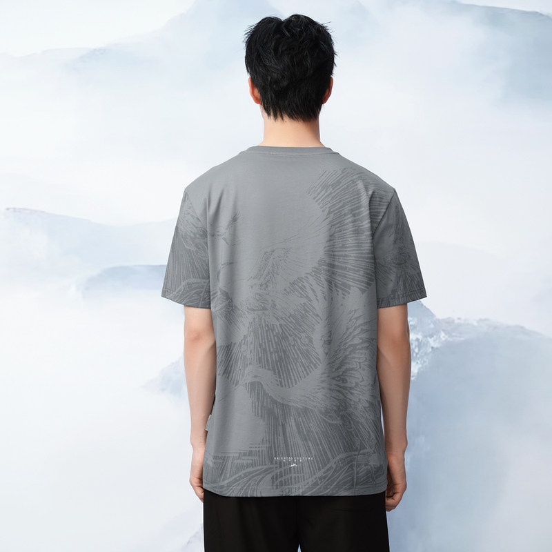 HLA/海澜之家纯棉短袖T恤2025夏新款圆领宽松刺绣凉感半袖上衣男