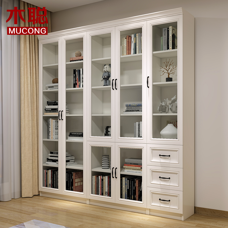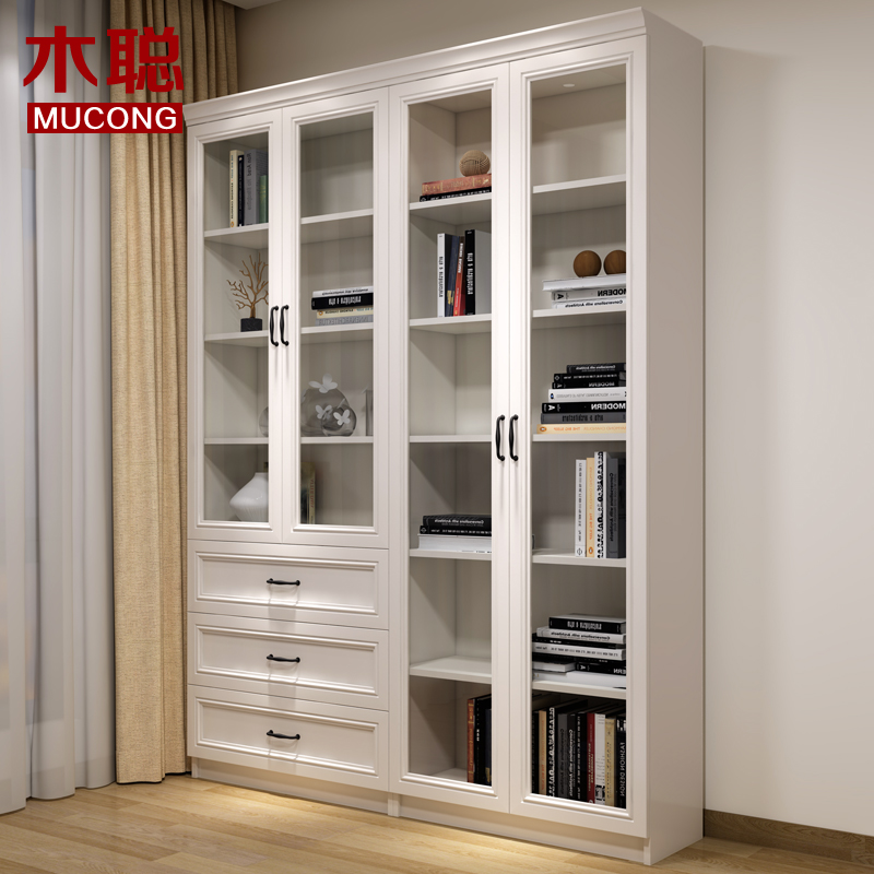 现代简约防尘书柜带玻璃门自由组合展示柜储物柜书房书架定制4F45
