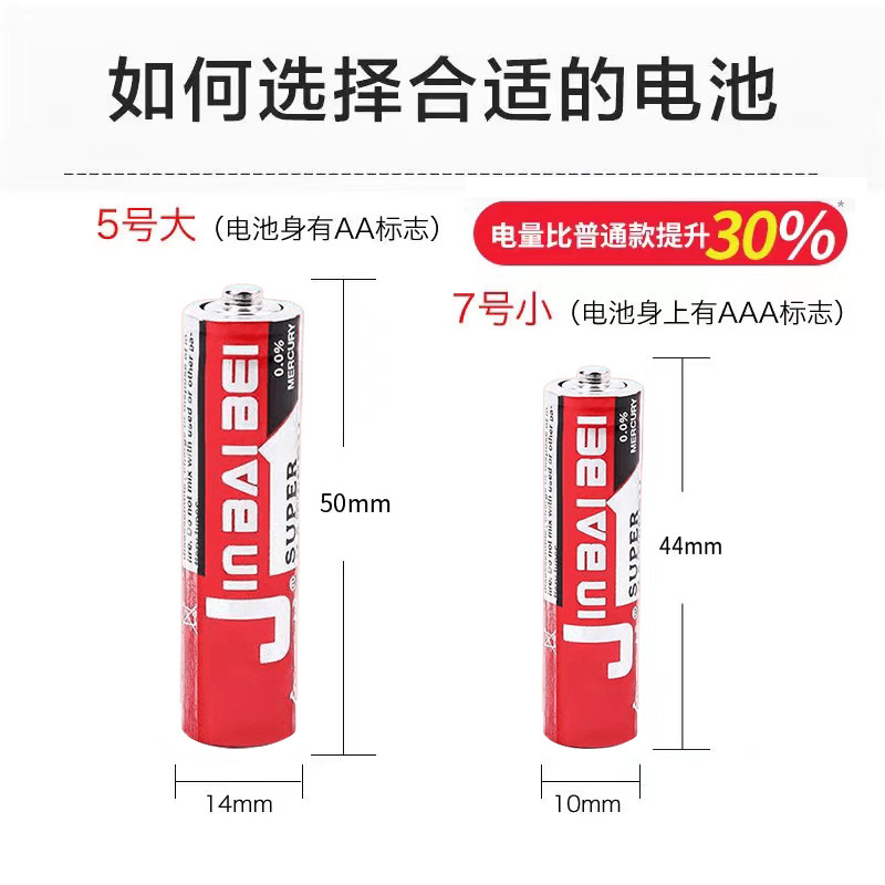 金百倍5号7号电池五号七号炭性1.5V空调电视遥控器鼠标牙刷小玩具