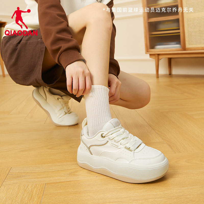乔丹板鞋运动鞋女鞋冬季新款休闲百搭波浪厚底增高面包鞋软底白色