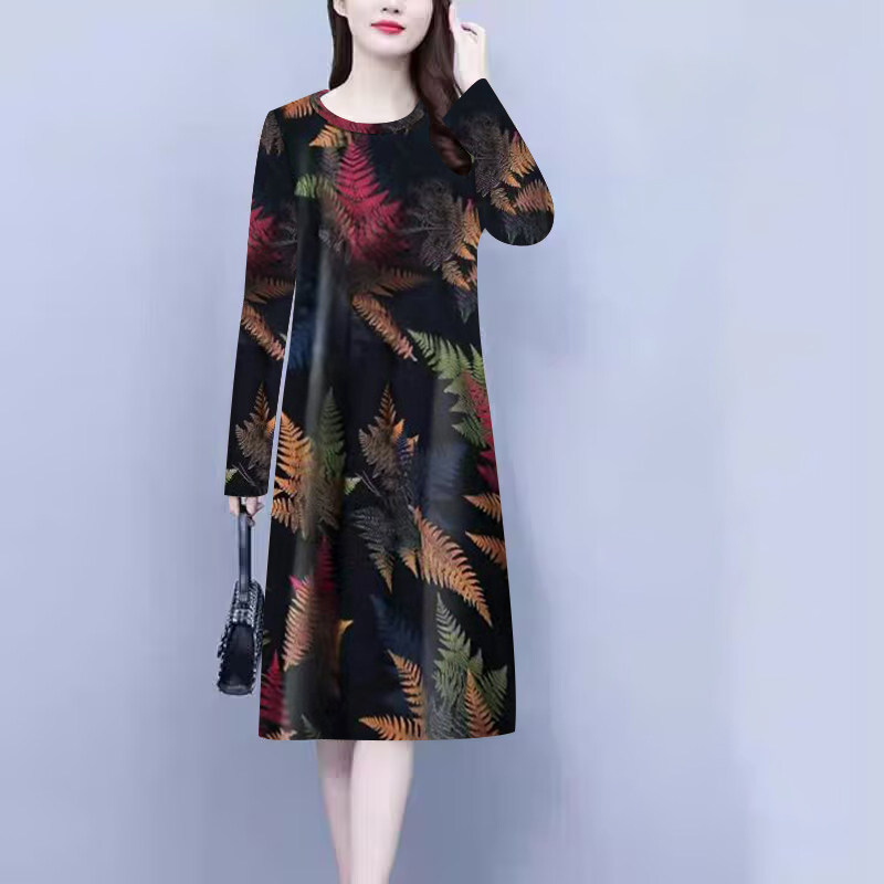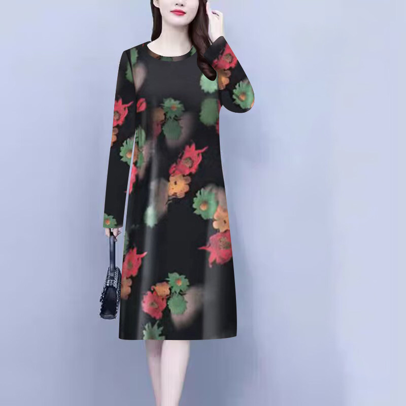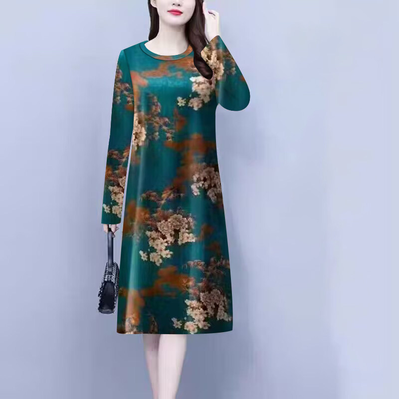 品牌妈妈装薄款长袖连衣裙春夏新款女秋冬大码遮肚显瘦中老年裙子