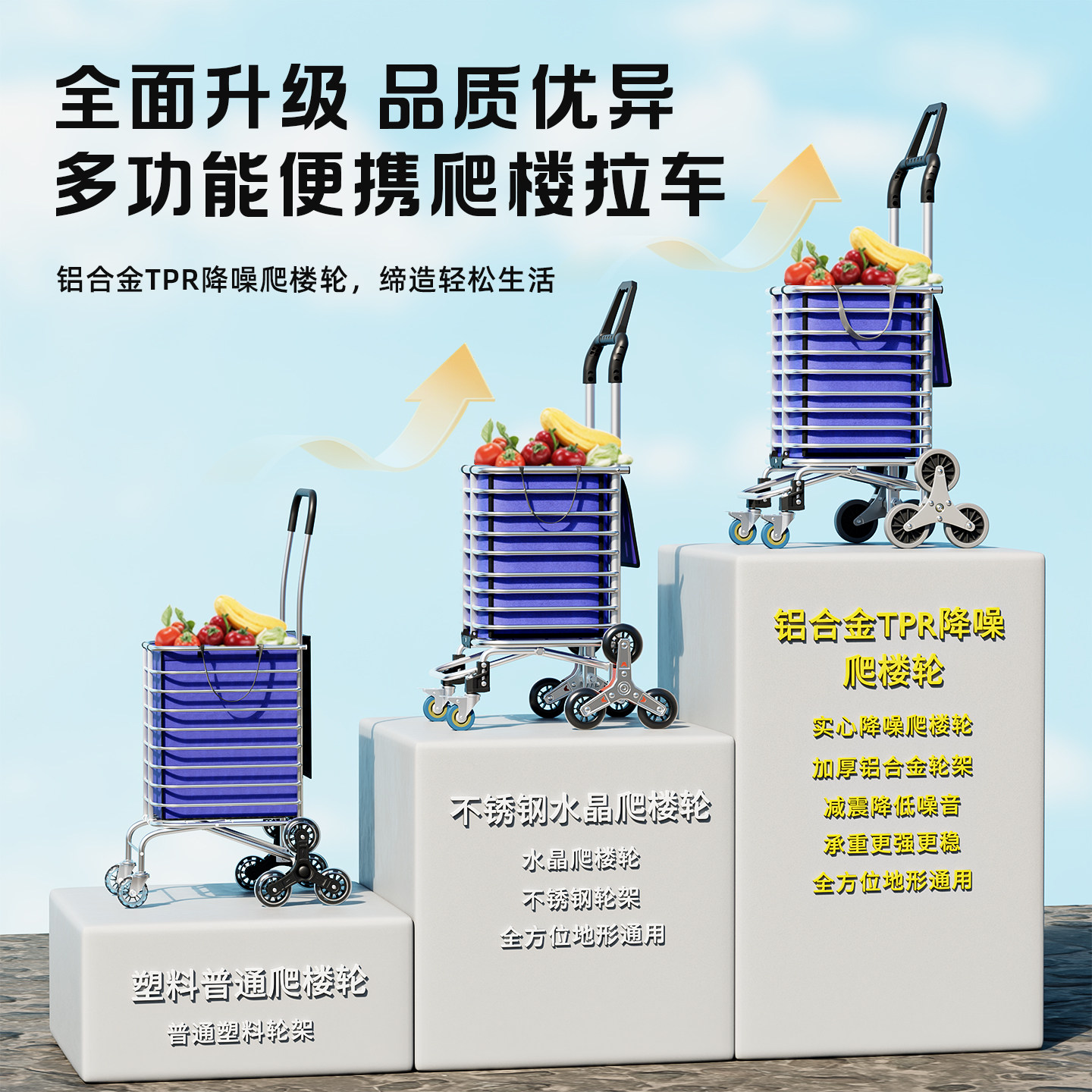 捷安玺可折叠买菜小拉车家用便携手推车超市购物拉杆车爬楼梯拖车