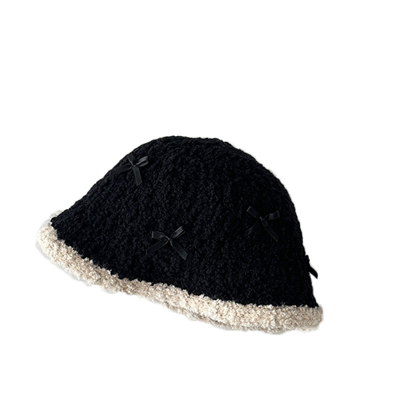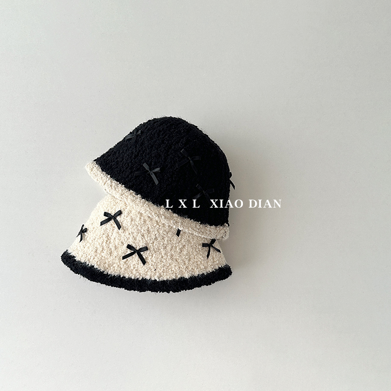 儿童帽子女童秋冬季毛绒保暖渔夫帽超萌可爱蝴蝶结百搭宝宝水桶帽