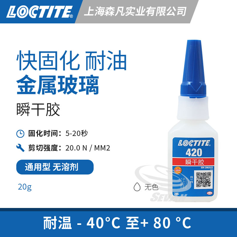 乐泰420 瞬干胶无溶剂快干胶水渗透粘接中小零件金属橡胶塑料塑胶