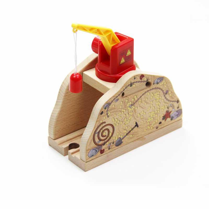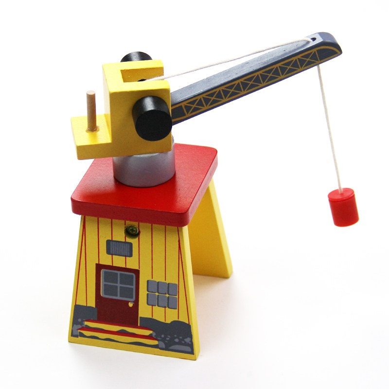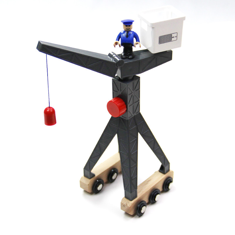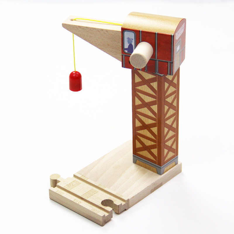 木质火车轨道塔吊配件吊车木头起重机升降机男孩儿童木制玩具吊机