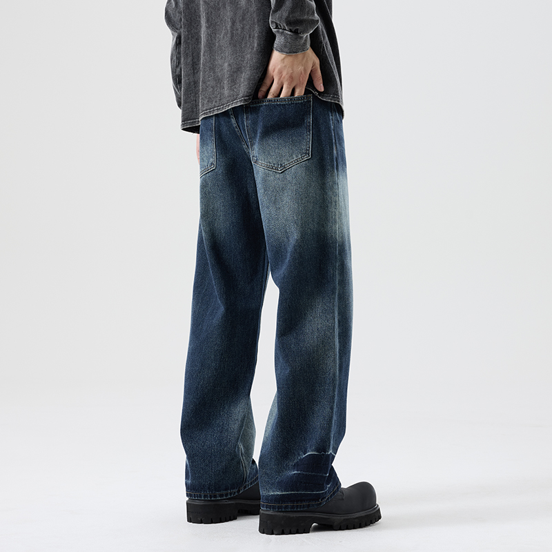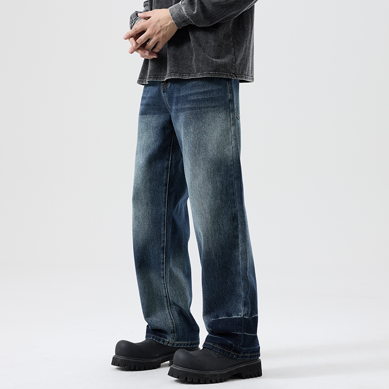 秋冬季男士牛仔时尚潮牌休闲微弹怀旧宽松直筒青年牛仔裤男