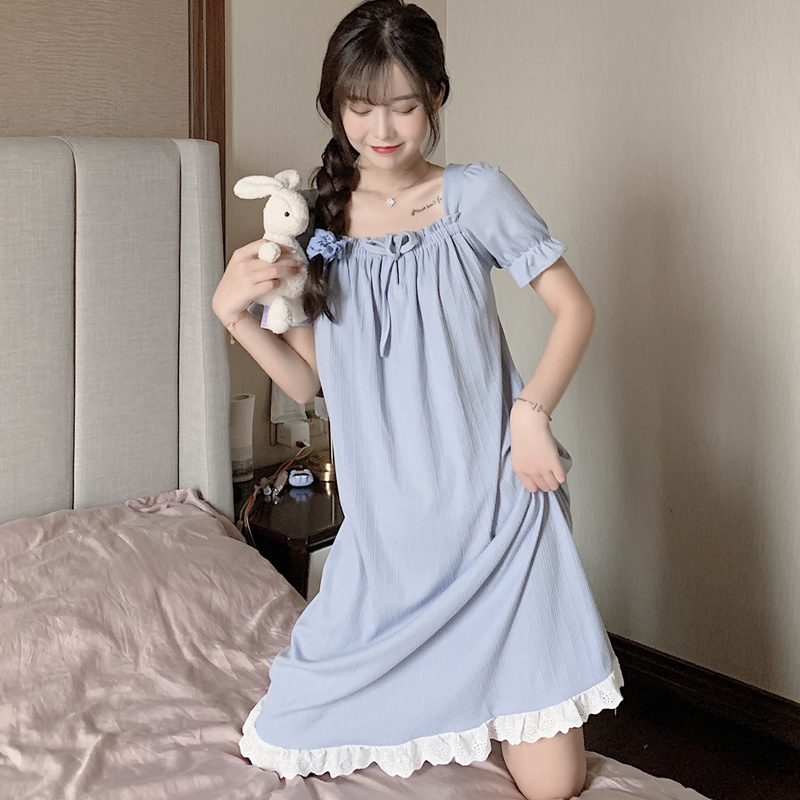 睡衣女夏季短袖纯棉网红爆款大码孕妇睡裙女学生薄款可外穿家居服