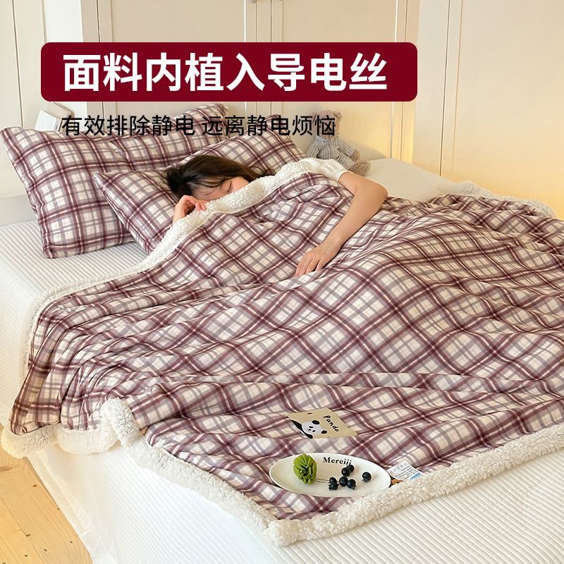 爱彼此冬季保暖豹纹猫咪卡通织标加厚牛奶绒羊羔绒毛毯多功能毛毯