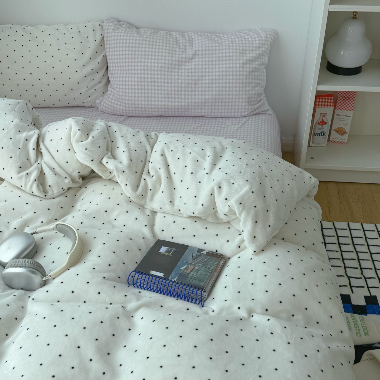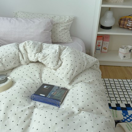 梨梦 奶芋波点 奶油保暖加厚牛奶绒四件套床单被套珊瑚绒床上用品