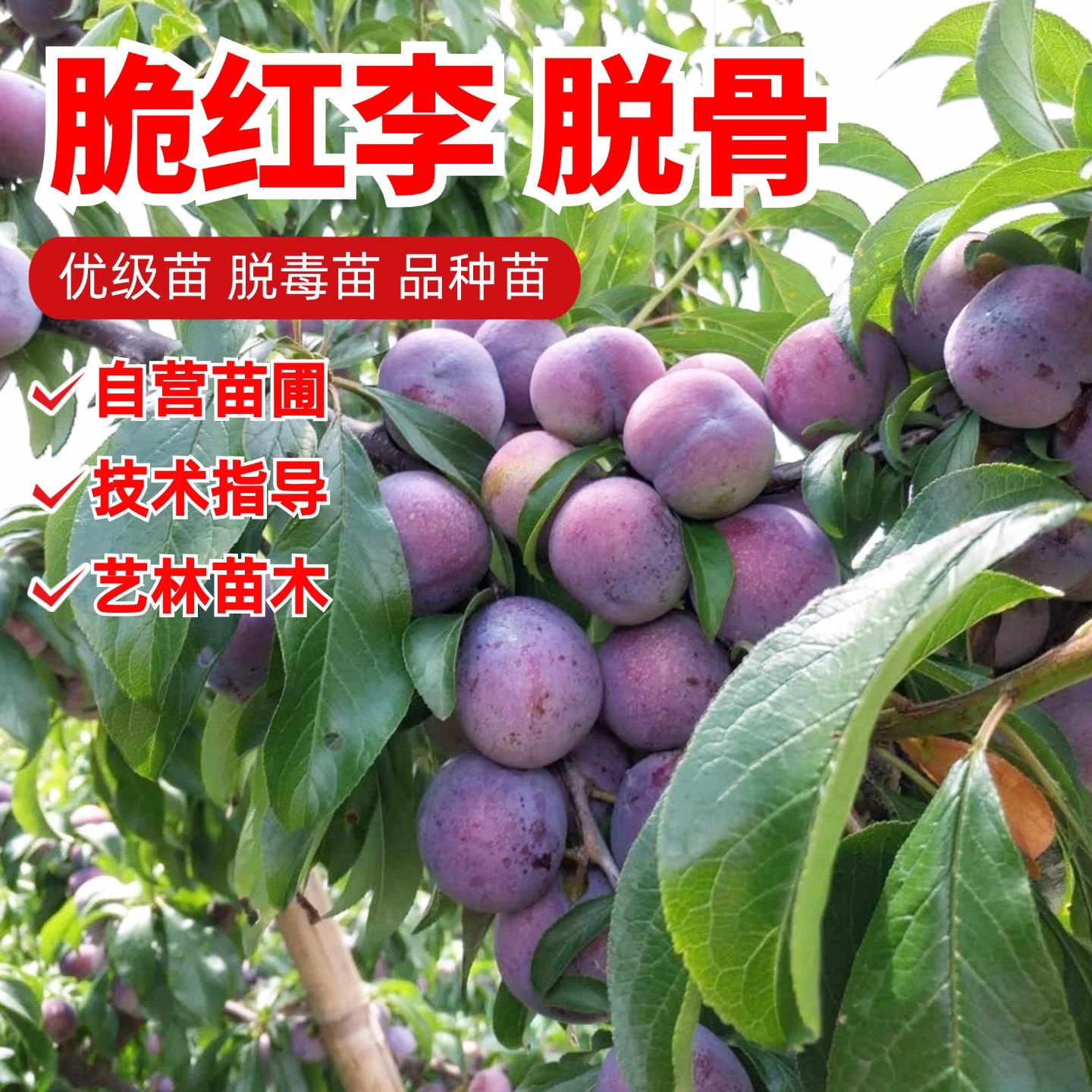 四川脱骨脆红李子苗晚熟青脆李嫁接蜂糖李子树苗南北方水果树果苗