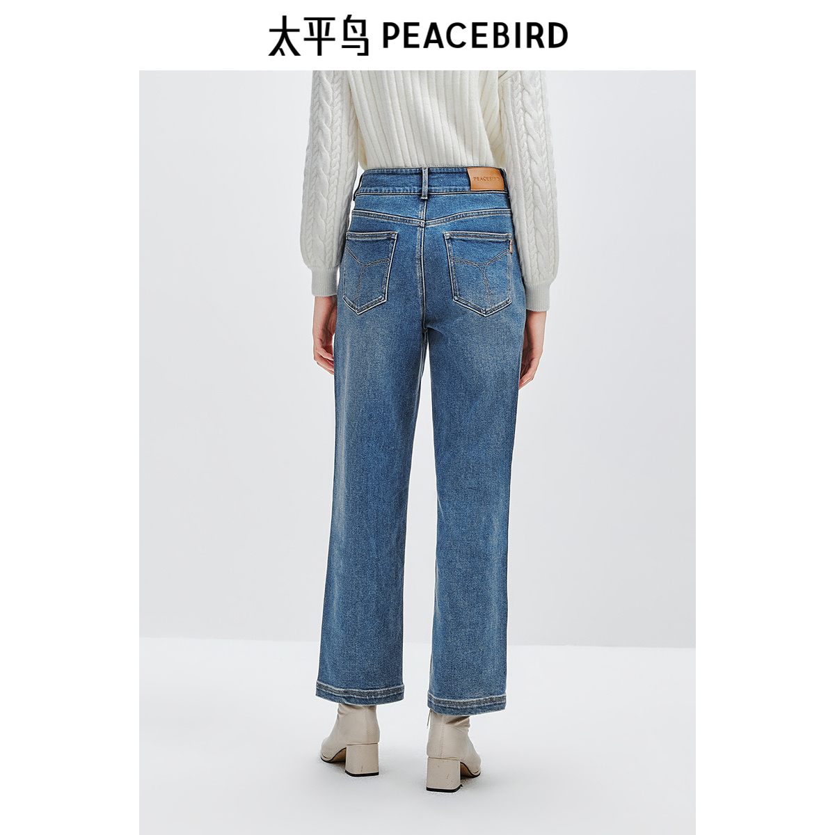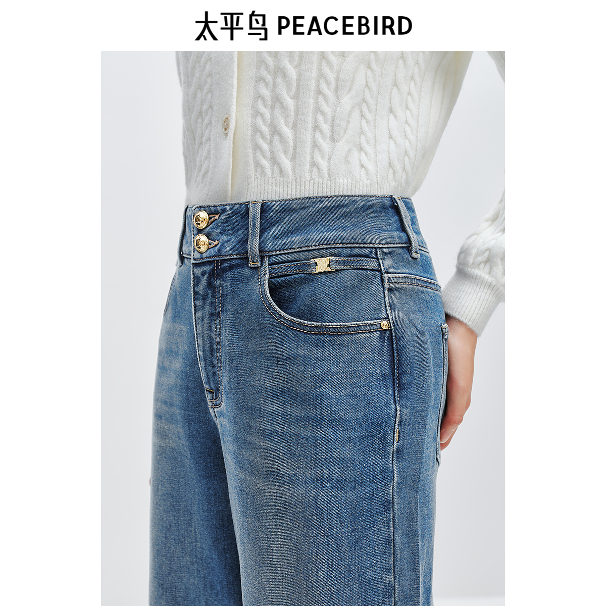 太平鸟高腰哈伦牛仔裤2025年秋冬新款温暖丹宁两粒扣锥形牛仔裤女