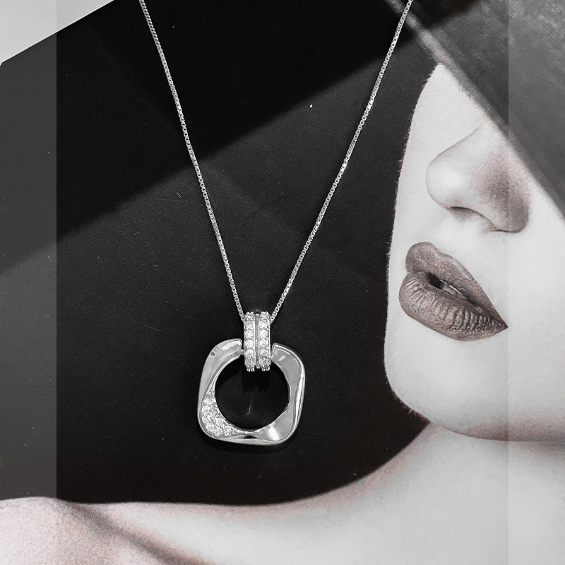 银色几何方形项链高级简约小众精致锁骨链长款秋冬毛衣链大气配饰