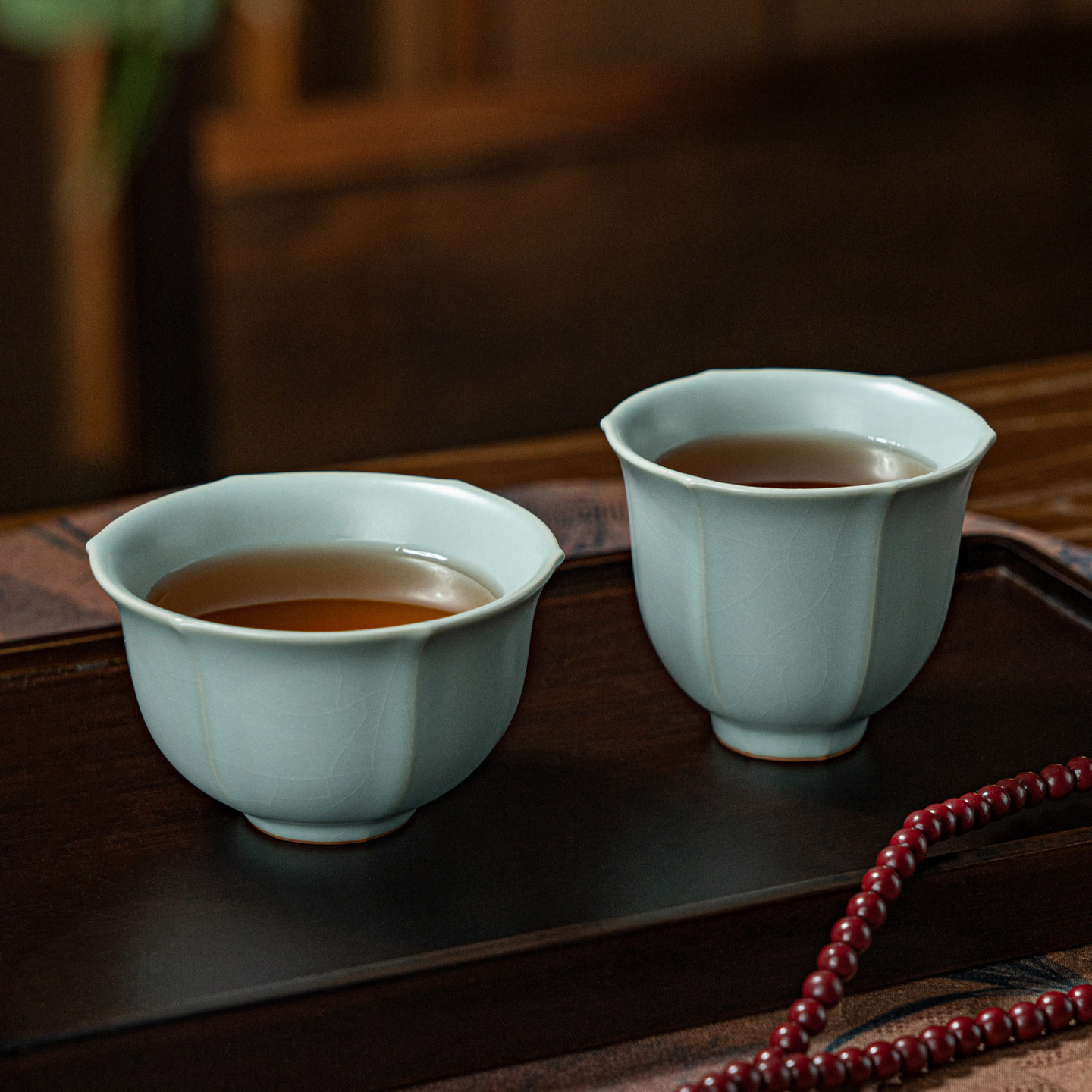 汝窑主人杯茶杯套装礼盒装手工陶瓷品茗杯景德镇汝瓷功夫茶杯送礼