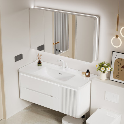 九牧浴室柜组合橡木烤漆陶瓷一体盆卫生间洗手洗脸盆洗漱台奶油风