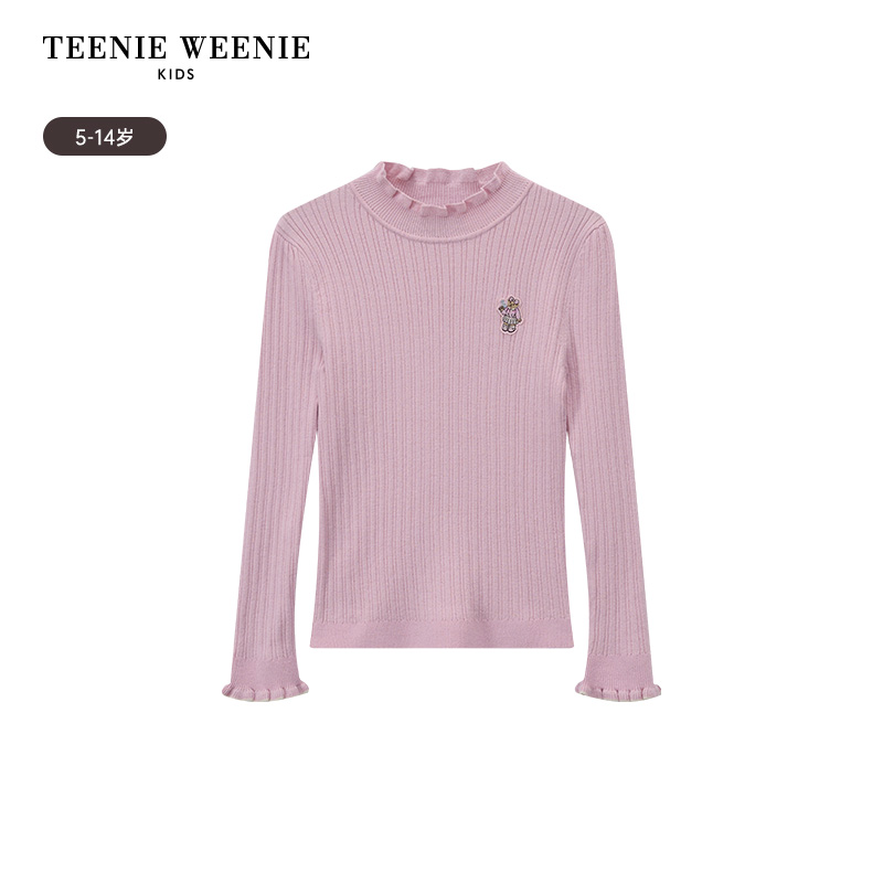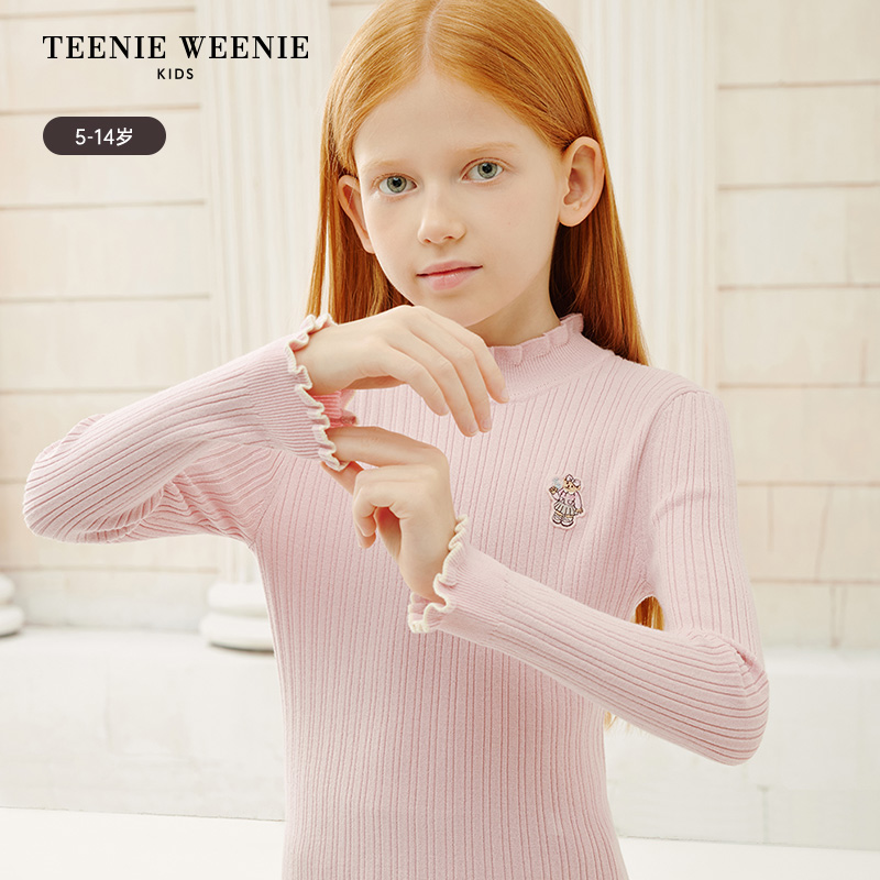 TeenieWeenie Kids小熊童装秋冬款女童花边半高领套头毛衣针织衫