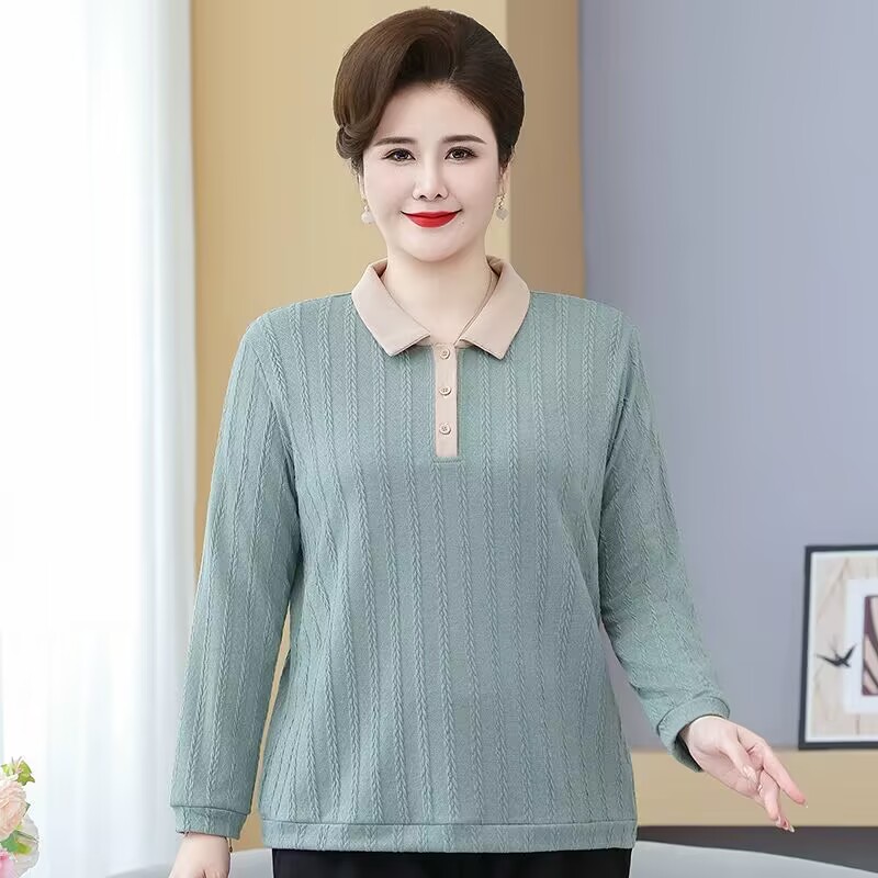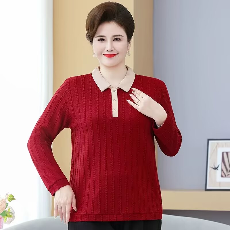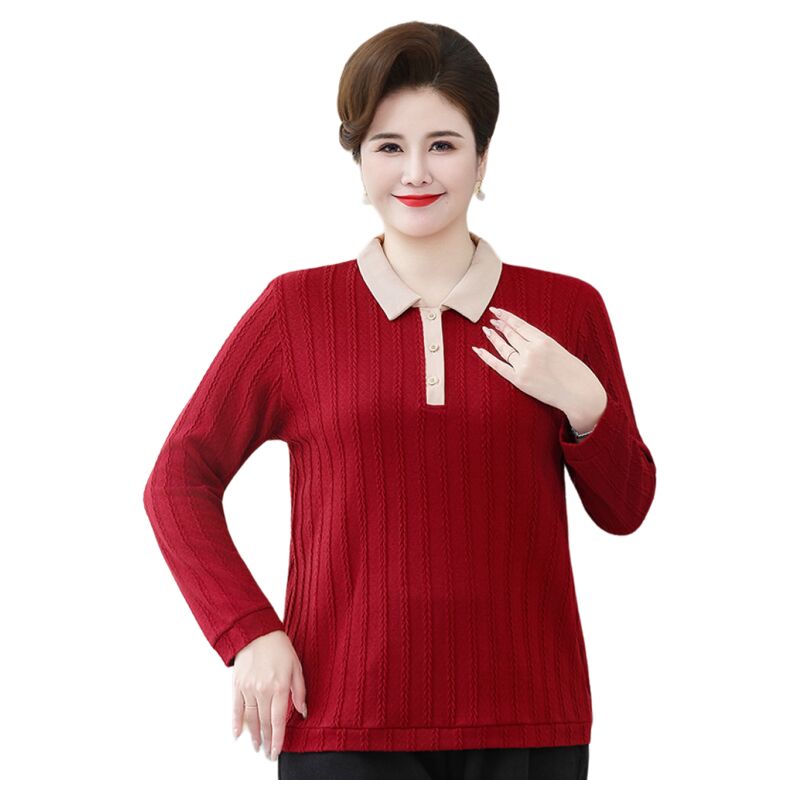 妈妈秋装加肥加大码长袖中年春秋上衣打底针织小衫中老年人女毛衣
