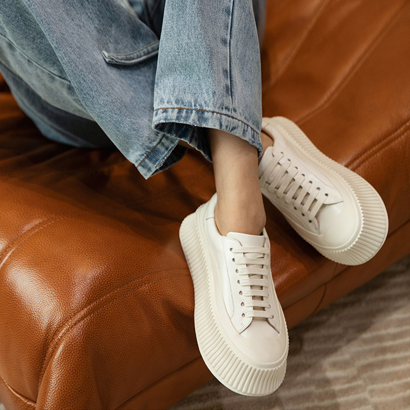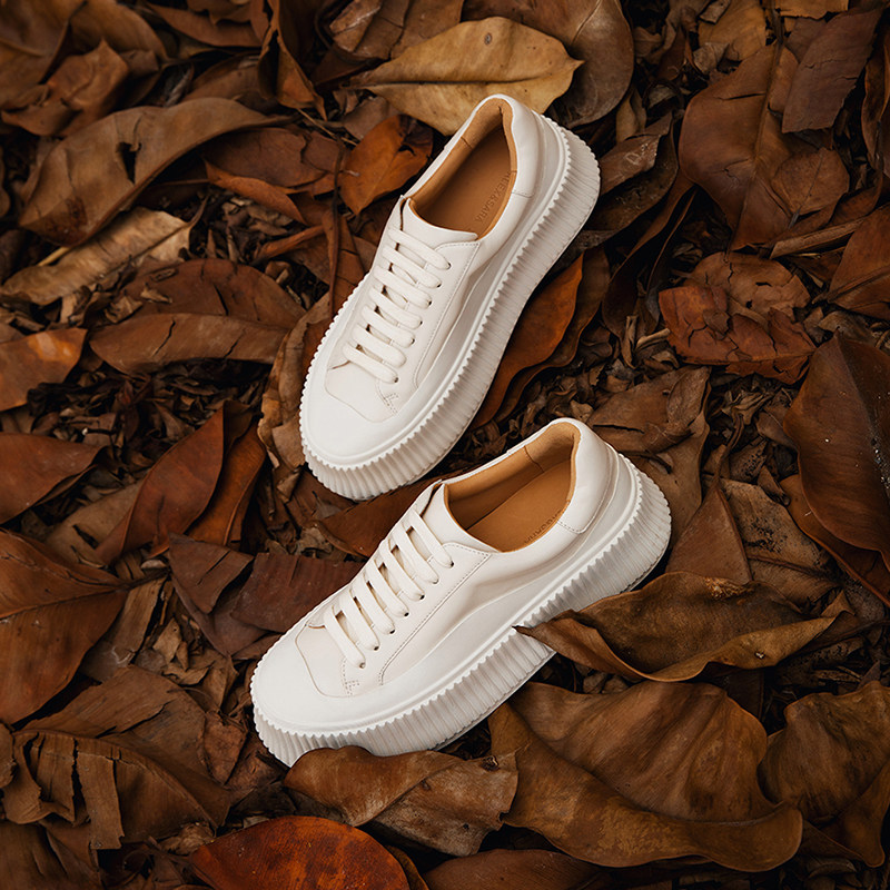 【经典返场】ALEXSARA新款百搭圆头厚底系带小白鞋真皮增高饼干鞋