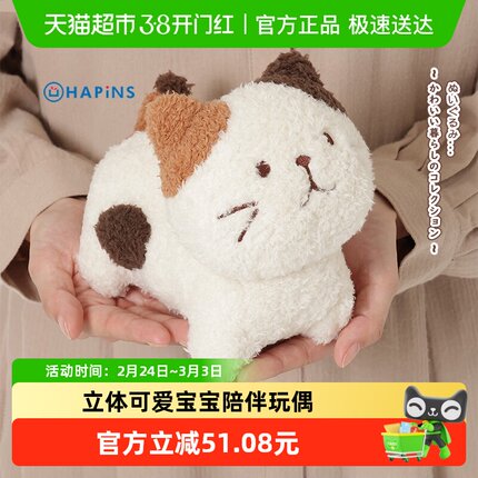 日本HAPiNS三花猫咪玩偶布娃娃抱枕公仔女孩卧室毛绒玩具新年礼物