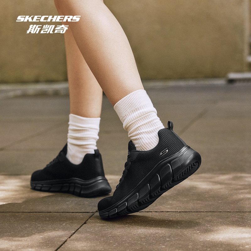 斯凯奇女鞋新款潮流款经典黑色跑步鞋耐穿耐磨网布透气休闲运动鞋