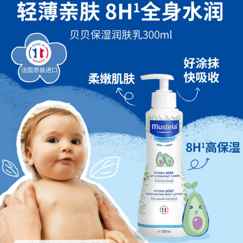 法国进口Mustela妙思乐保湿润肤乳300ml宝宝润肤露身体乳洗护乳液