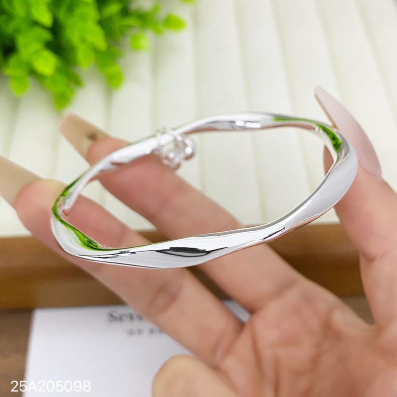 999纯银手镯女莫比乌斯福字平安锁铃铛闭口实心手环时尚百搭手饰