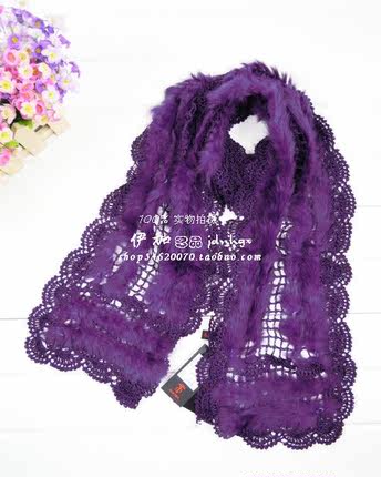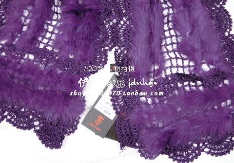 冬季时尚中年女高档兔毛保暖围巾柔软拼接装饰披肩6039特价紫色