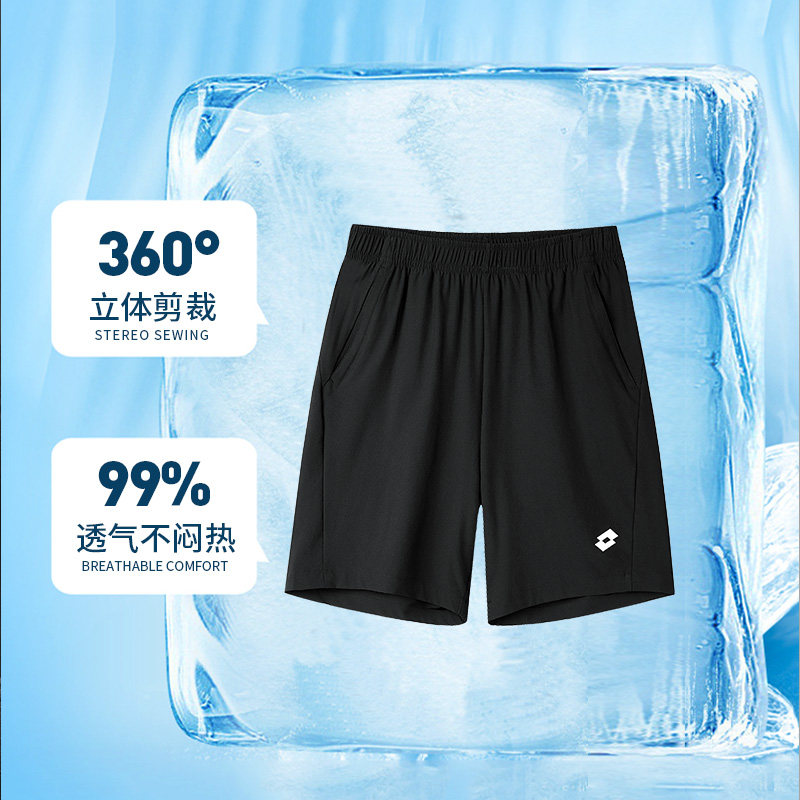 LOTTO乐途男裤运动短裤2025夏季新款休闲宽松透气外穿黑色五分裤