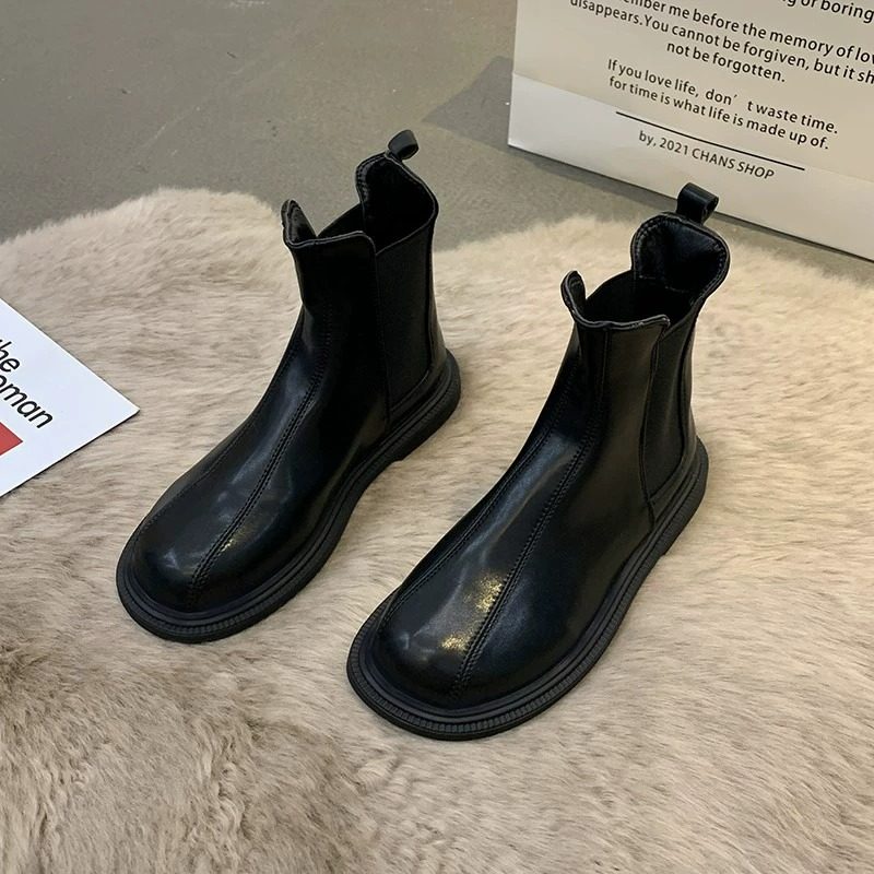青蕴真皮马丁靴平底切尔西瘦瘦靴