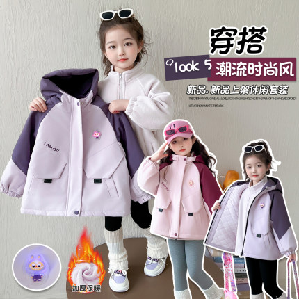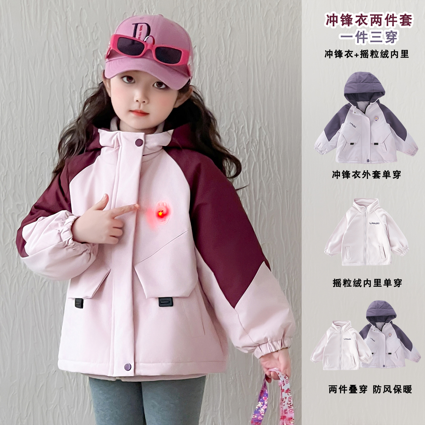 女童三合一冲锋衣秋冬2025新款女宝宝加棉防风外套儿童冬装上衣潮