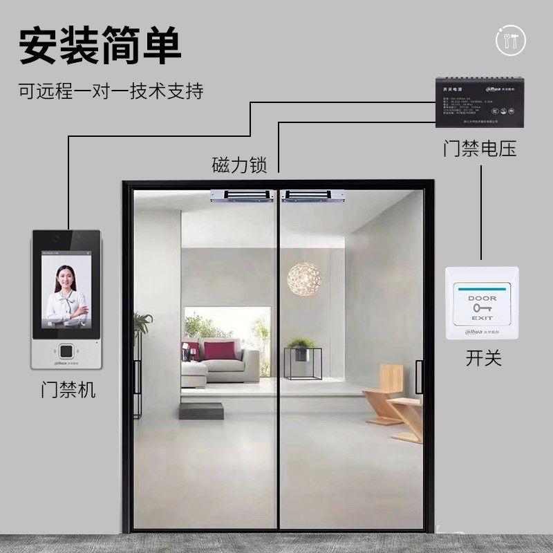 大华门禁机人脸识办公室磁力锁刷脸指纹感应门考勤机刷卡套装K41