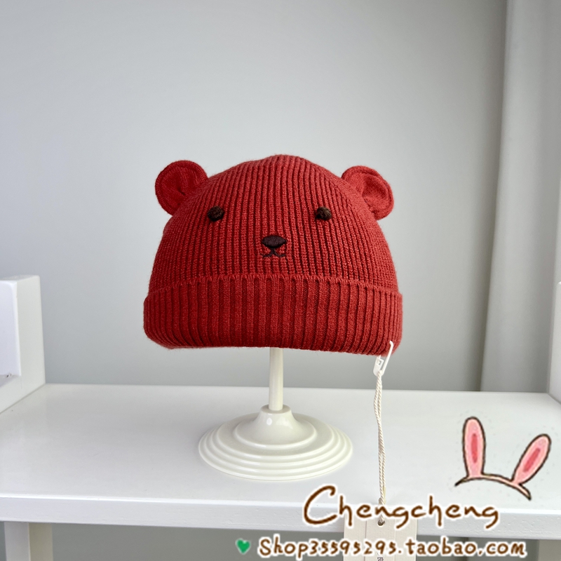 木然良品冬季新款男女宝宝婴儿童毛线可爱洋气百搭动物园翻边帽子