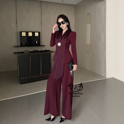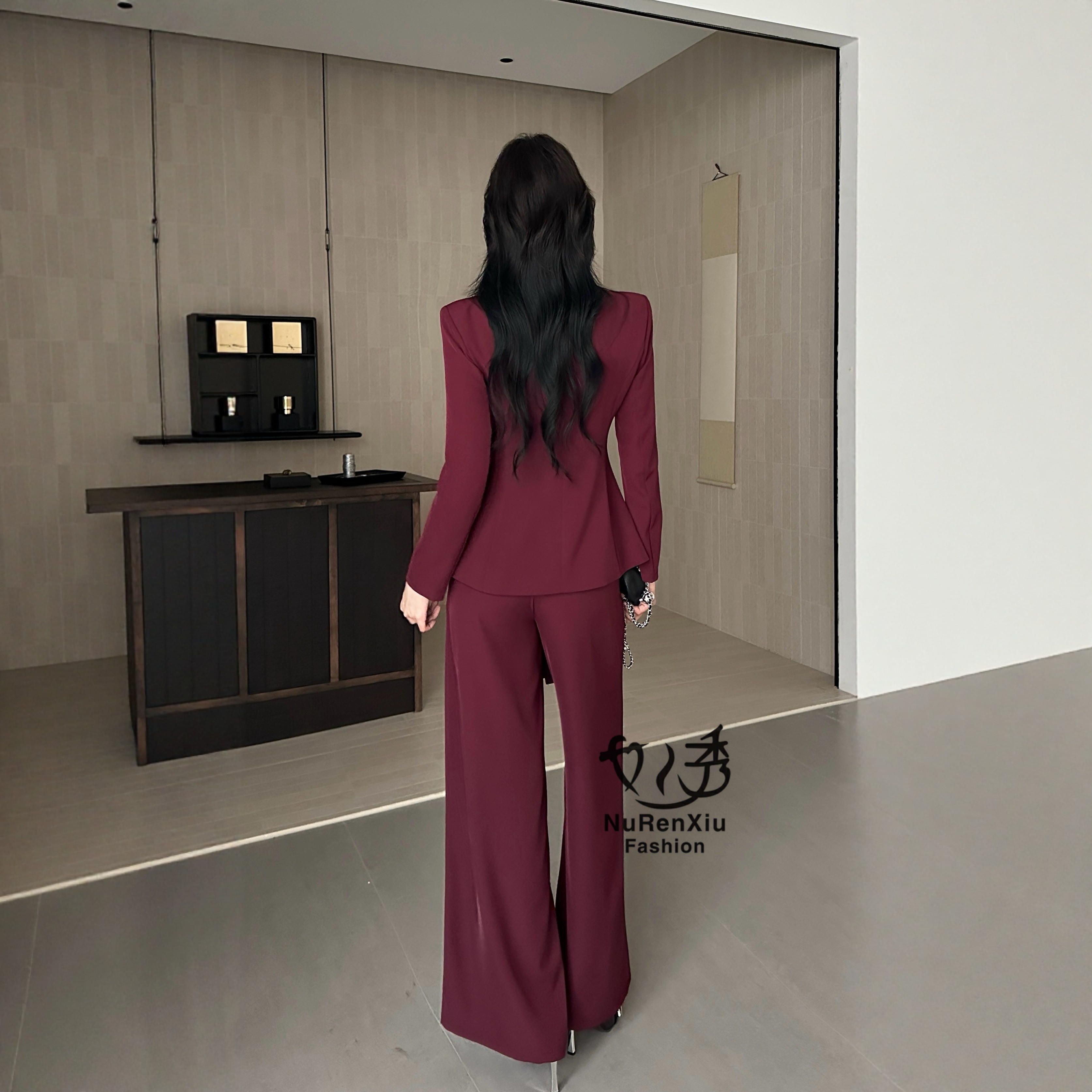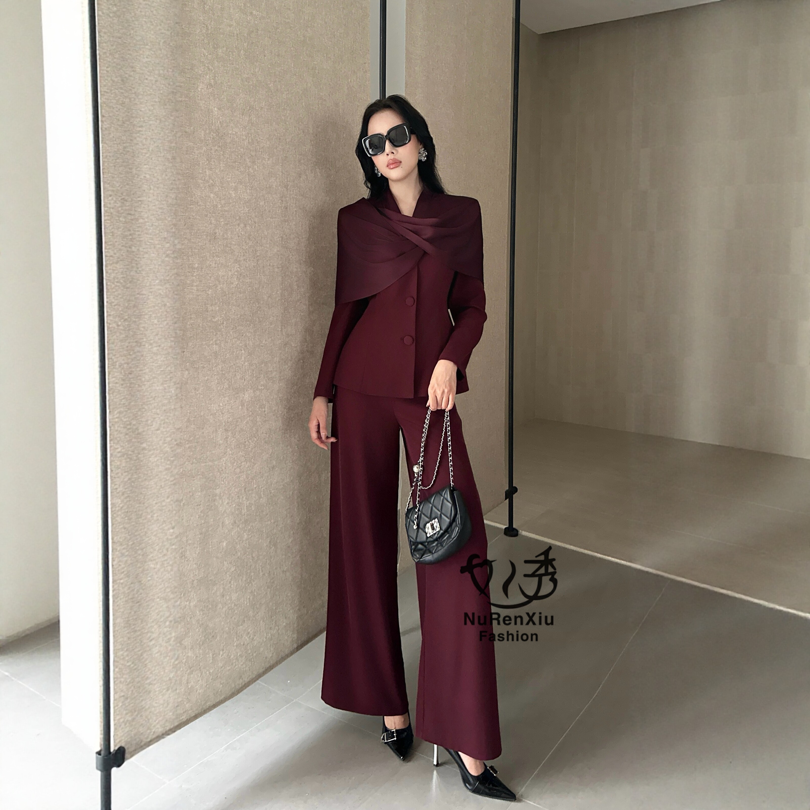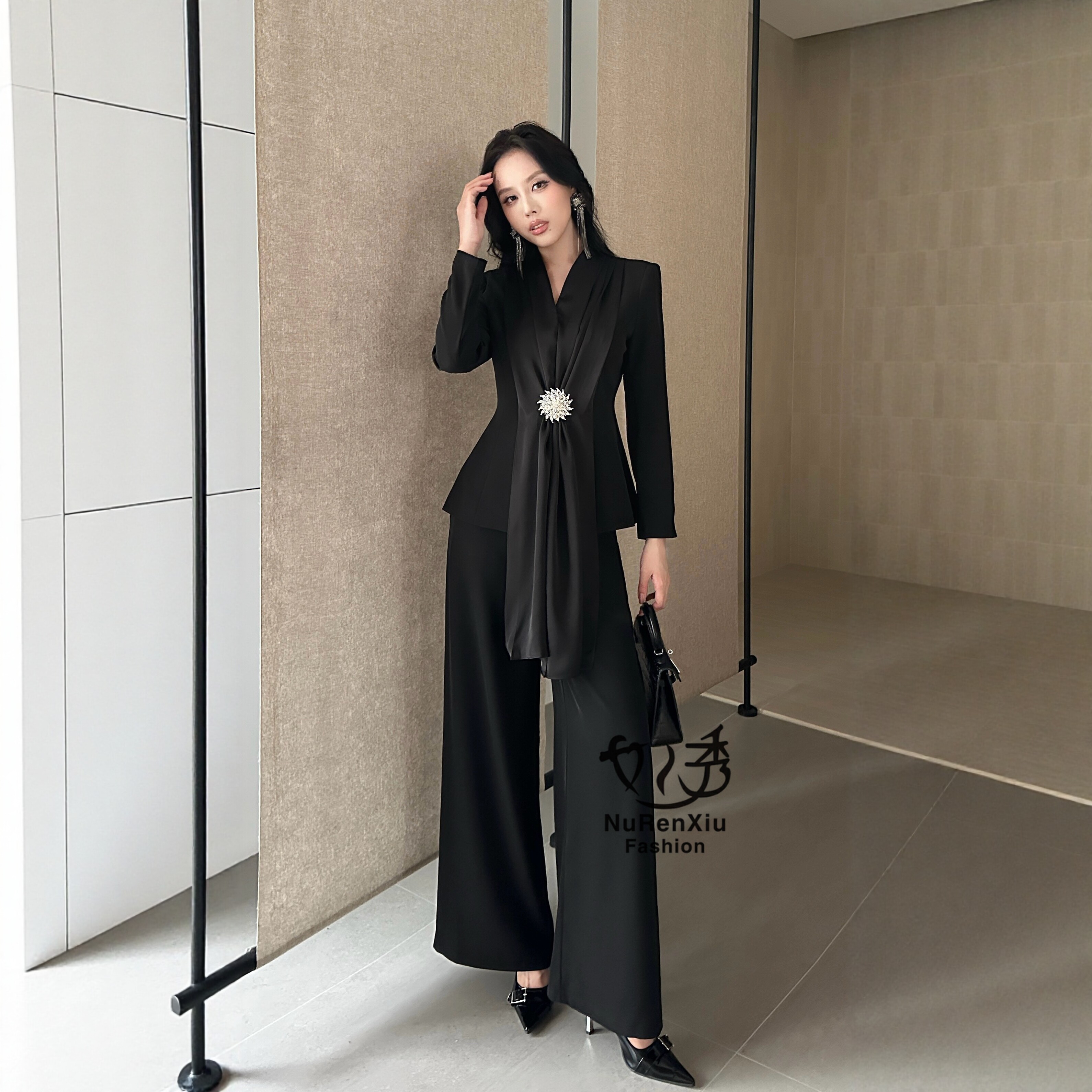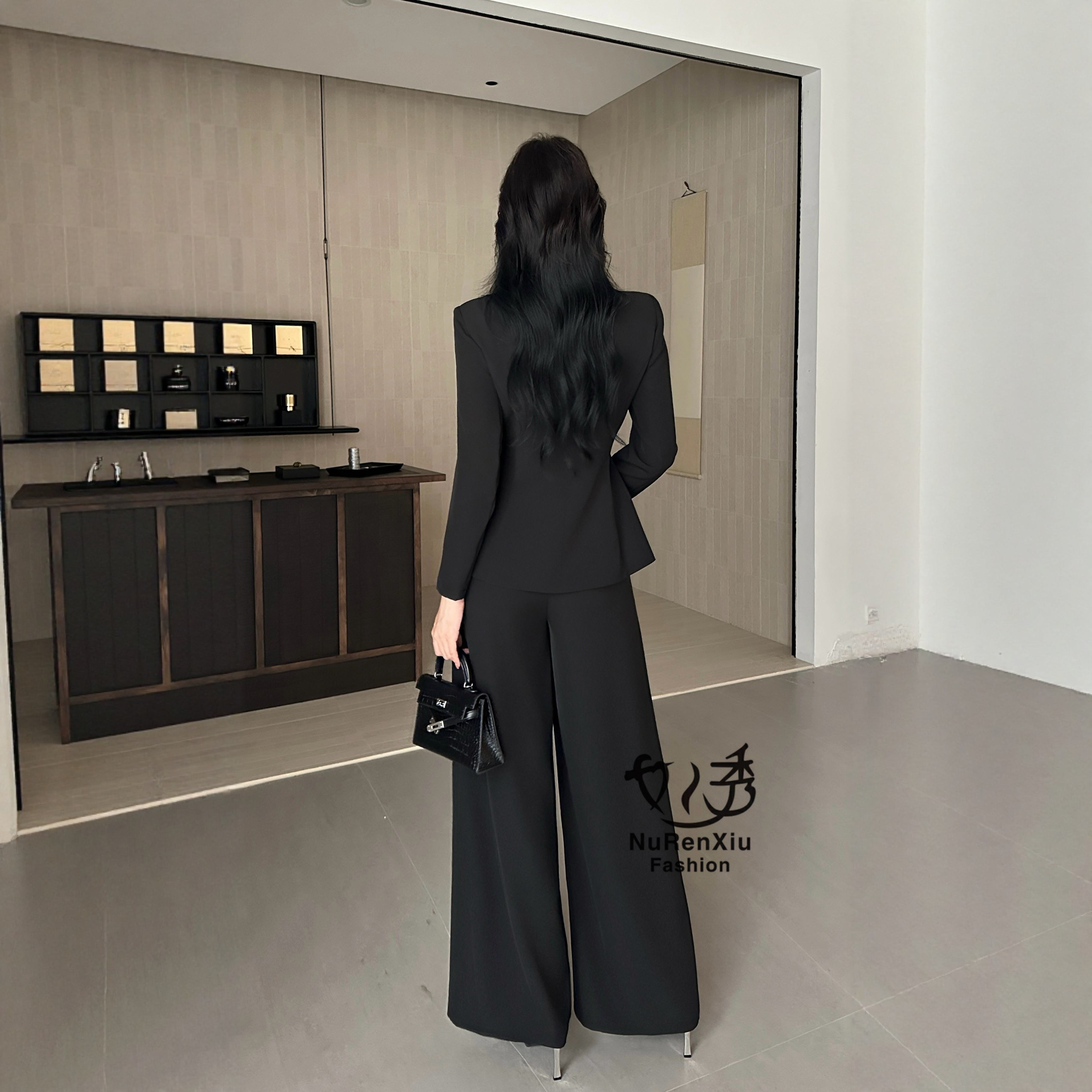 2025春秋新款时尚套装女高级感气质名媛西装外套配高腰阔腿裤女