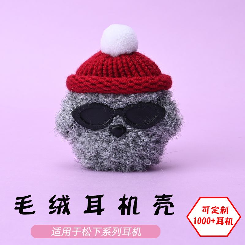适用于松下technics EAH-AZ80无线蓝牙耳机墨镜灰狗毛绒耳机壳毛线绒针编织软壳耳机保护套-可定制