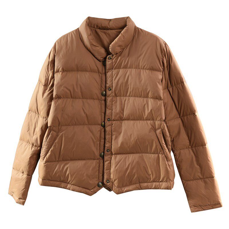2025秋冬新款白鸭绒文艺轻薄羽绒服女短款简约立领小个子轻便外套
