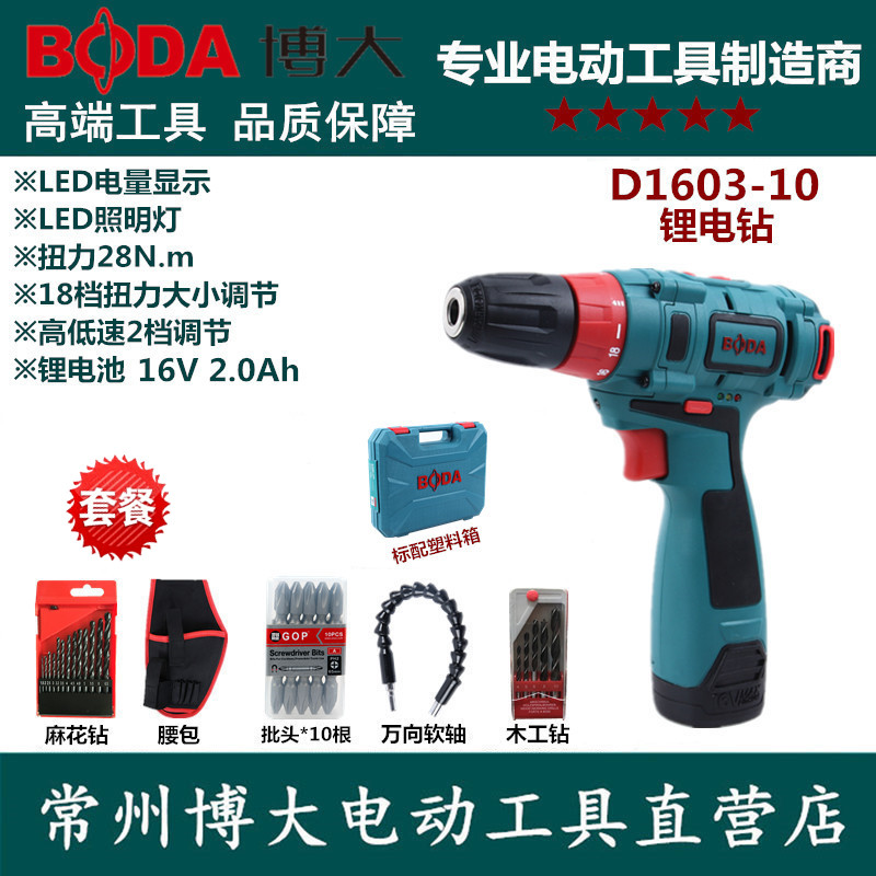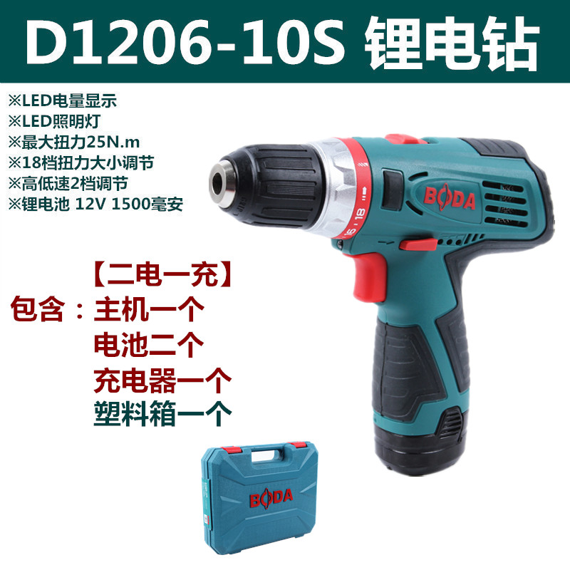 博大D1206-10S锂电钻充电式起子家用电动螺丝刀12V双速手电钻