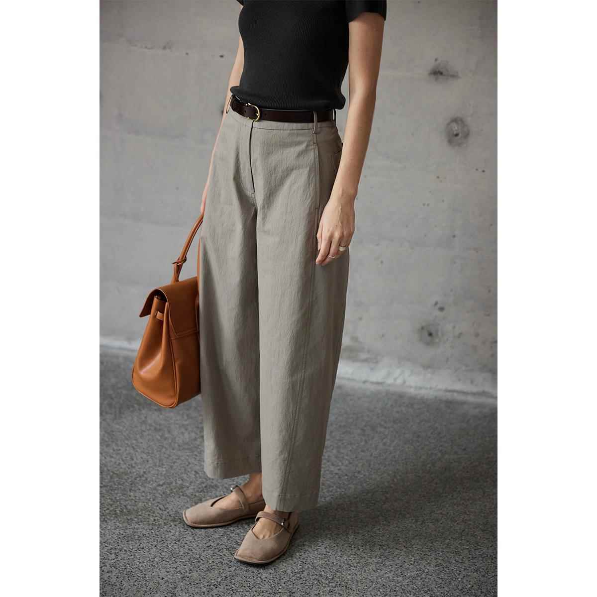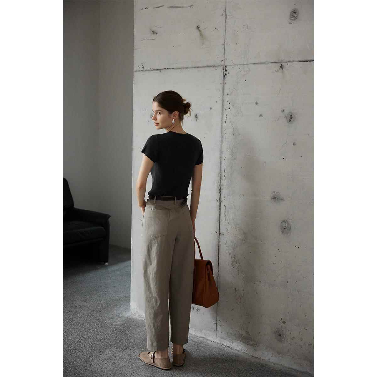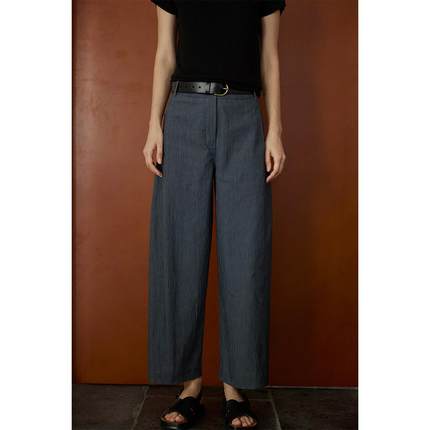 moofeel肌理感九分休闲 裤女秋季薄款高腰罗卜型宽松西装阔腿裤
