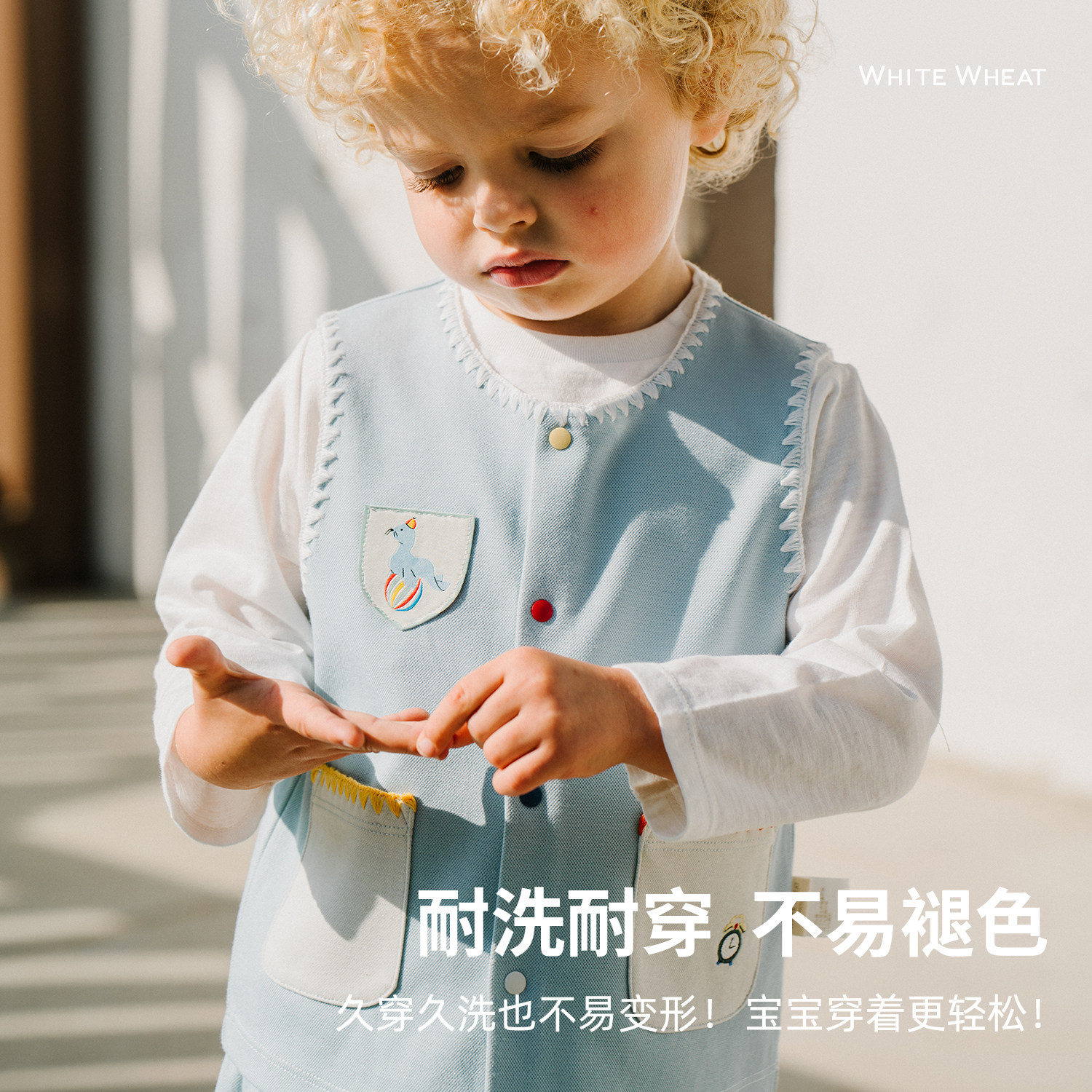 whitewheat男童26春秋季新款女童仿牛仔马甲宝宝背心外穿儿童坎肩