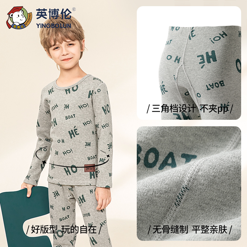 英博伦男童秋衣秋裤秋冬季纯棉保暖加厚儿童贴身内衣套装