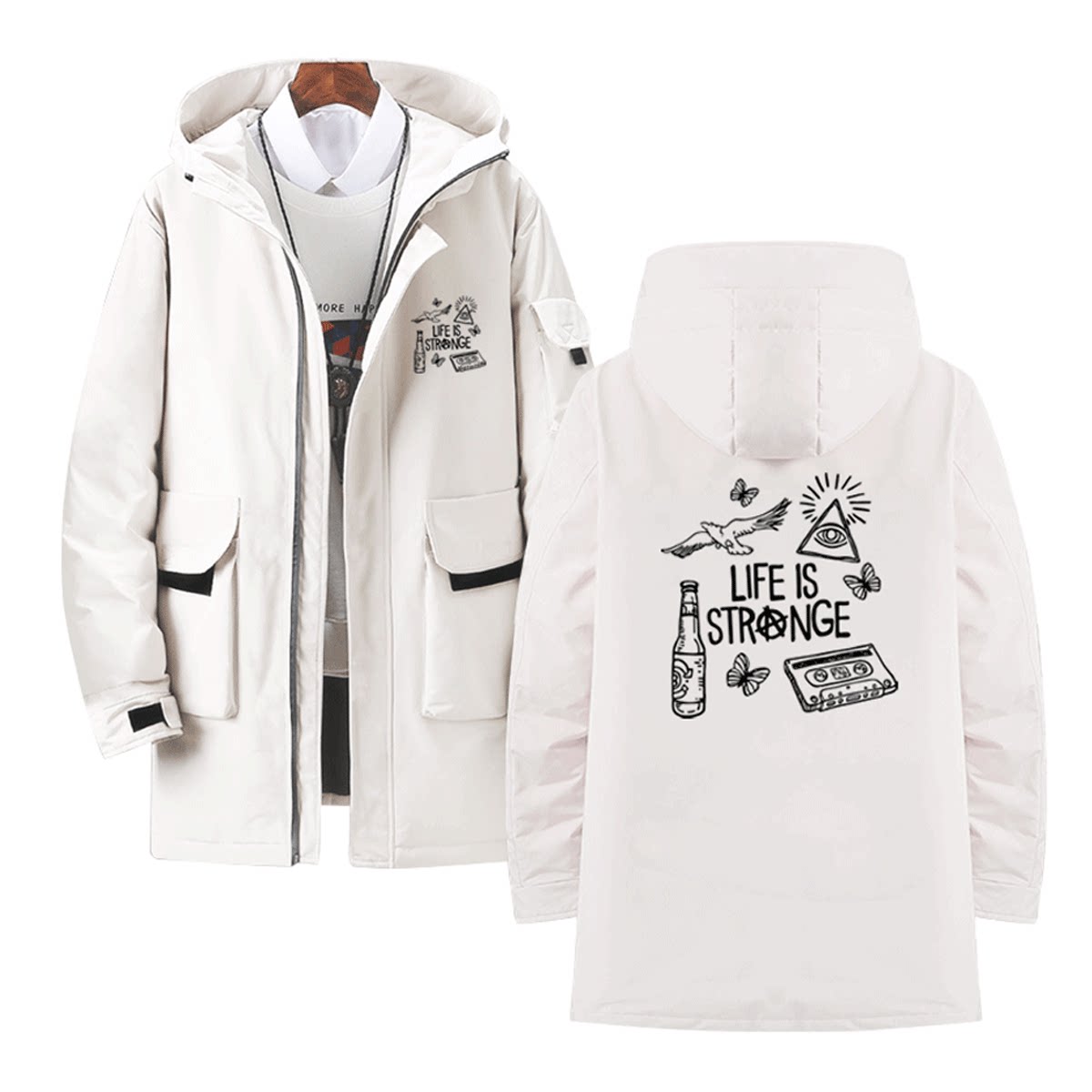 奇异人生情侣男女款蝴蝶游戏印花周边休闲外套可定制中长款羽绒服