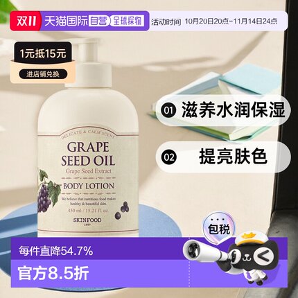 韩国直邮SKIN FOOD 思亲肤 身体乳滋养水润保湿润肤乳450ml 葡萄