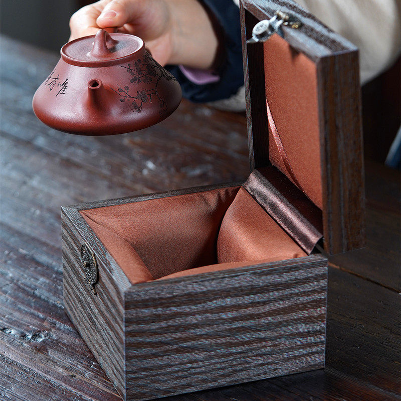 高档木纹礼品盒紫砂壶建盏茶杯茶壶收纳锦盒主人杯单杯包装盒包邮