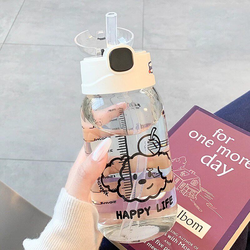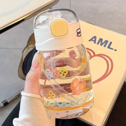 重力球吸管杯孕妇产妇糖耐专用带C刻度水杯躺着喝水高硼硅玻璃杯